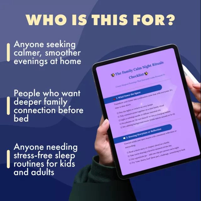 This digital checklist is perfect for parents, caregivers, and families who want evenings to feel calmer, cozier, and more connected. If you’ve tried bedtime routines that fizzle out, the Family Calm Night Checklist: Rituals That Actually Stick is your solution—it’s simple, adaptable, and designed for real life.