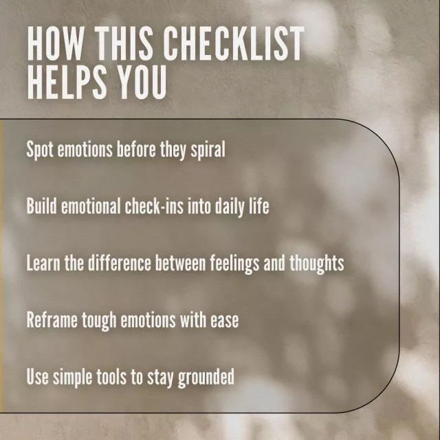 Unlike typical emotional intelligence tools that can feel abstract or clinical, this checklist is straight-talking, compassionate, and actionable. It turns deep concepts into doable steps so you can build awareness gradually, naturally, and with more self-kindness than pressure.
