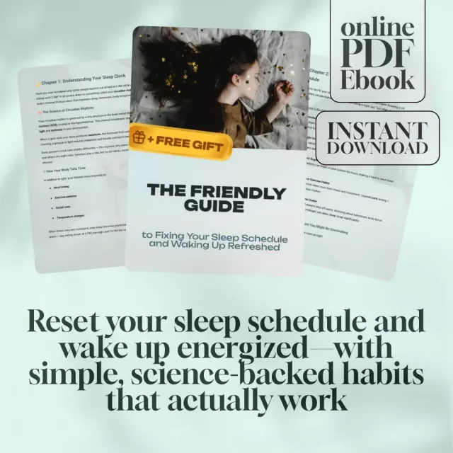 It’s time to stop dragging and start thriving. Download The Friendly Guide to Fixing Your Sleep Schedule and Waking Up Refreshed now and learn how to improve your sleep schedule in a way that finally sticks. Your refreshed mornings start here.