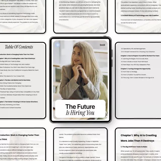 The world of work is changing faster than most people realize—and this eBook helps you stay ahead of it. The Future Is Hiring You is a practical, easy-to-read guide designed to help you understand where jobs are actually going in the age of artificial intelligence. Instead of fear-based headlines, this book focuses on clarity, opportunity, and real-world direction, grounded in ai job growth trends that are already reshaping careers across industries.