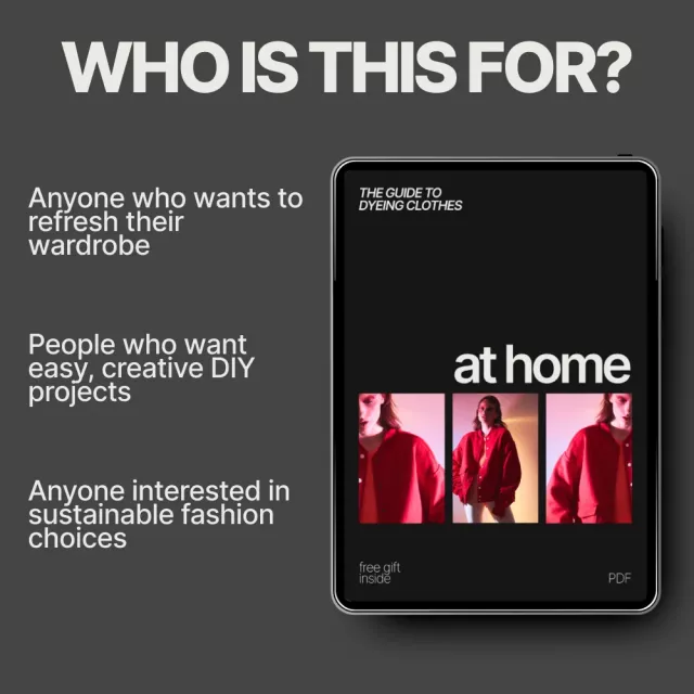 If you’re ready to turn plain or worn clothes into colorful, personalized pieces, this digital download is your go-to resource. Download The Guide to Dyeing Clothes at Home today and start creating a wardrobe that truly reflects your style.