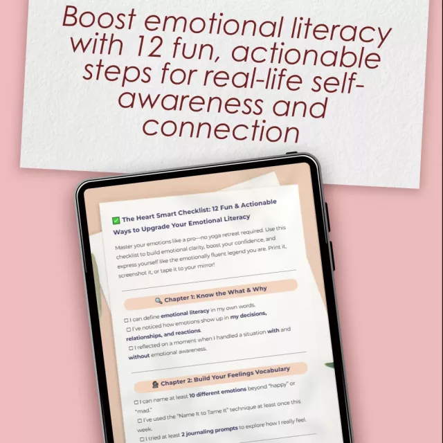Download The Heart Smart Checklist: 12 Fun & Actionable Ways to Upgrade Your Emotional Literacy now and take charge of your emotional journey with tools that actually make a difference. Whether for yourself or as a gift for someone who’s growing, this is a resource you’ll return to again and again. Ready to feel more in tune with yourself?