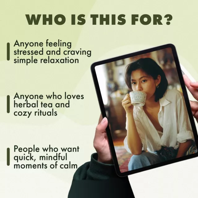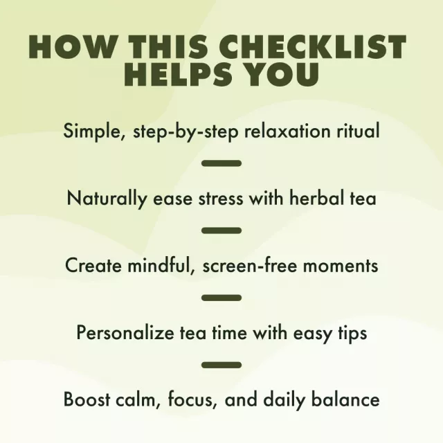 This checklist is ideal for anyone seeking natural stress relief, tea lovers wanting to deepen their ritual, and busy people craving quick but meaningful moments of calm in their day.