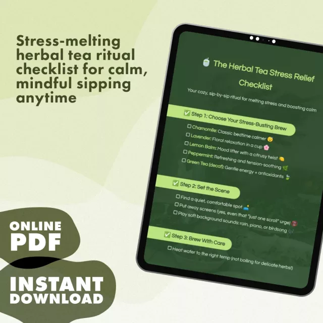 Ready to bring calm into your day with a soothing ritual? Download The Herbal Tea Stress Relief Checklist now and make every cup of tea your personal pause button. Your stress-free ritual starts today!
