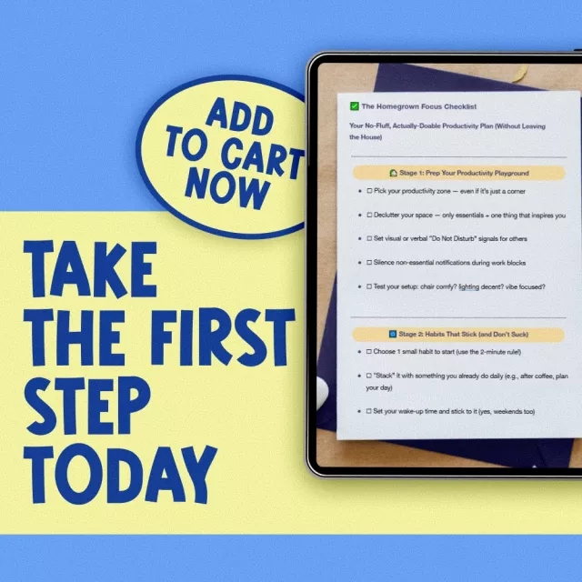 Start mastering how to become productive at home with small wins that build real momentum. Download The Homegrown Focus Checklist now and transform your home into a focus-friendly haven—one habit, one day, one corner at a time.