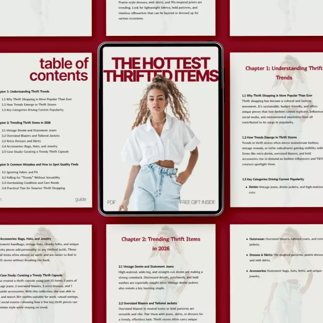 If you love thrift shopping or are simply looking to make the most out of your secondhand shopping experience, “The Hottest Thrifted Items” is your ultimate digital guide to finding, styling, and curating the most on-trend thrift pieces. This eBook is packed with expert insights, trend analysis, and practical tips that will help you navigate the world of vintage fashion in 2026 and beyond. Whether you’re a seasoned thrifter or new to the game, this guide is designed to elevate your shopping experience and help you uncover timeless treasures at unbeatable prices.