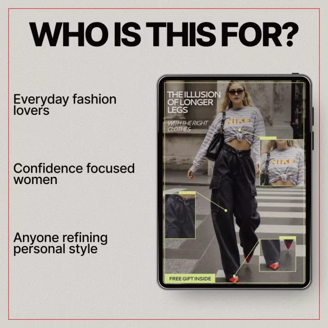 This eBook is ideal for women who want to look taller and more put-together without changing their body or buying an entirely new wardrobe. It’s especially helpful if you struggle with proportions, feel overwhelmed by styling advice online, or want a confidence boost through smarter clothing choices.