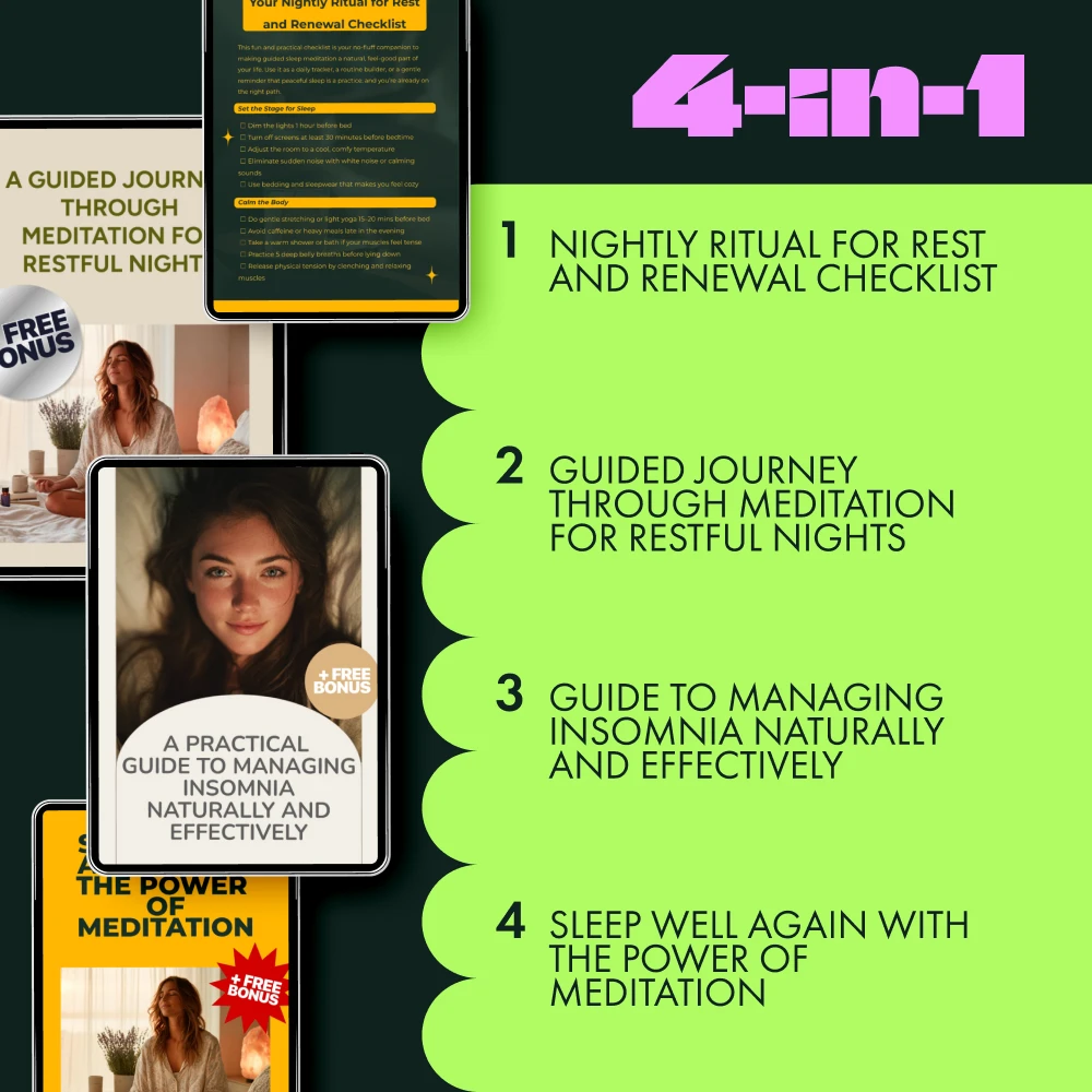 i've had trouble sleeping for years, constantly tossing and turning, but this bundle really helped me. the step-by-step guide is super practical and gave me a sense of control over my nights. i especially loved the nightly ritual checklist - it was so simple yet effective! meditations helped calm my mind, too. i finally feel like i’m getting deep, restorative sleep, and i wake up feeling ready to take on the day.