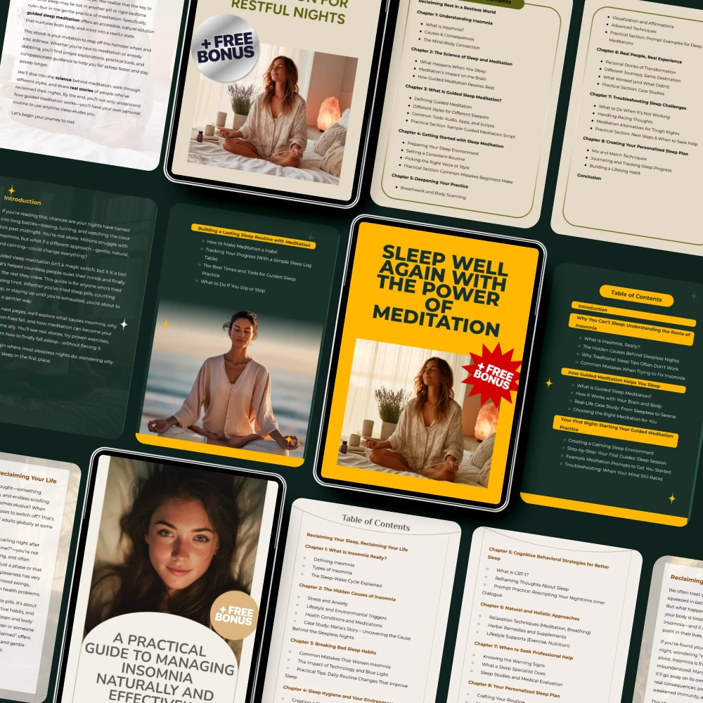 This bundle is incredible! I love how it combines practical advice with meditative techniques. It's not just tips, but a complete system to achieve restful sleep.