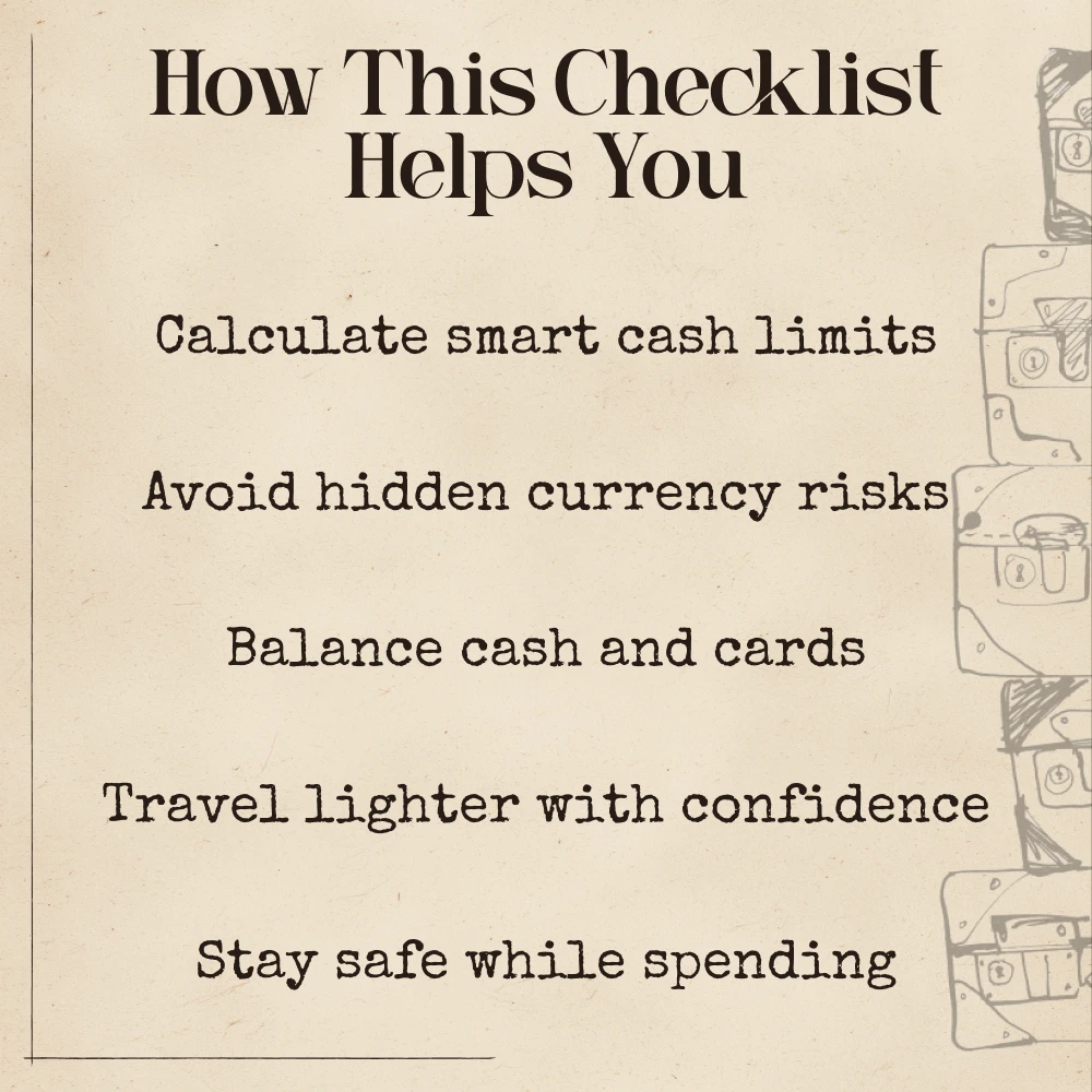 This checklist is ideal for frequent travelers, backpackers, digital nomads, and anyone tired of worrying about running out of cash or carrying too much. Whether you’re hopping between European capitals or exploring hidden gems in Asia, this AI-powered tool helps you strike the perfect balance between convenience, safety, and savings.