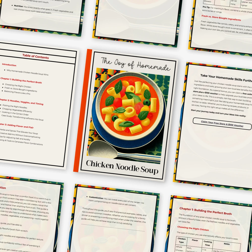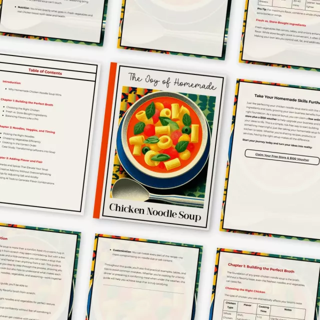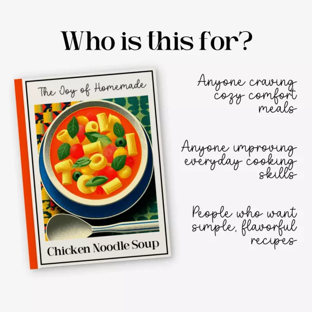 If you’re ready to master comforting, homemade meals with confidence, this guide is for you. Download The Joy of Homemade Chicken Noodle Soup now and start creating your own easy chicken noodle soup from scratch that your family and friends will ask for again and again. Add it to your cart today and turn your kitchen into the coziest place in your home.