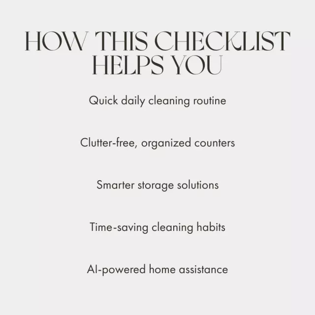 This checklist is ideal for anyone who wants a cleaner, calmer kitchen — whether you’re decluttering for the first time, trying to build better habits, or simply searching for how to keep your kitchen counters clear once and for all. It’s especially useful for busy parents, minimalists, and anyone who feels overwhelmed by daily messes.