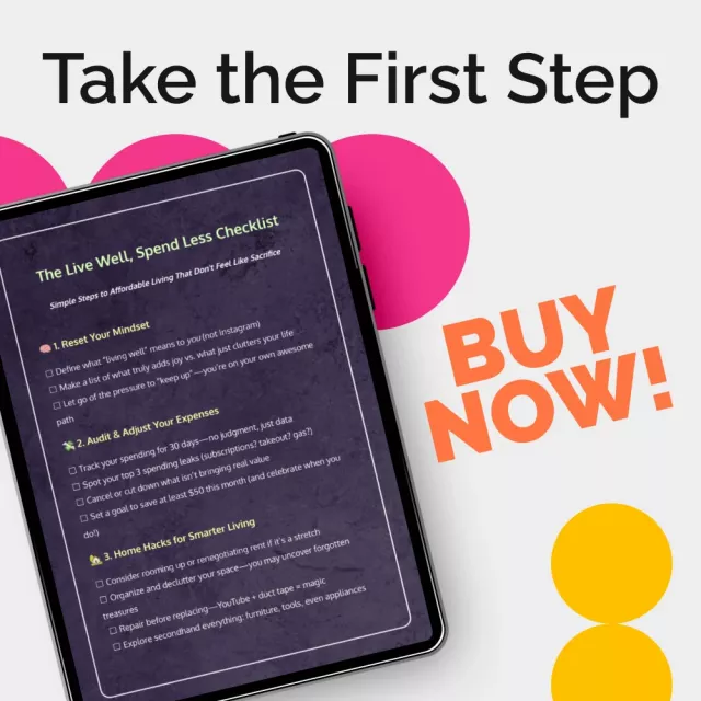 Download The Live Well, Spend Less Checklist now and take the first step toward financial peace and everyday happiness. Simplify your spending, celebrate small wins, and start living well the smart, affordable way.