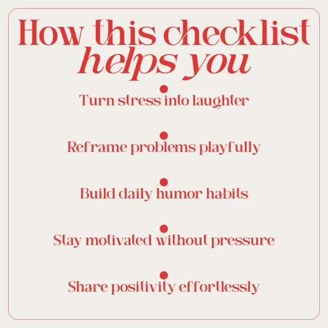 Need a lighter way to stay motivated, calm your stress, and actually enjoy personal growth? The LOL Lift-Off Checklist is a playful, practical digital checklist designed to help you use humor as a daily tool for encouragement. Instead of forcing positivity or pushing through burnout, this checklist invites you to laugh first and move forward second. With simple prompts, creative exercises, and laugh-out-loud examples, it turns everyday stress into moments of perspective and progress.