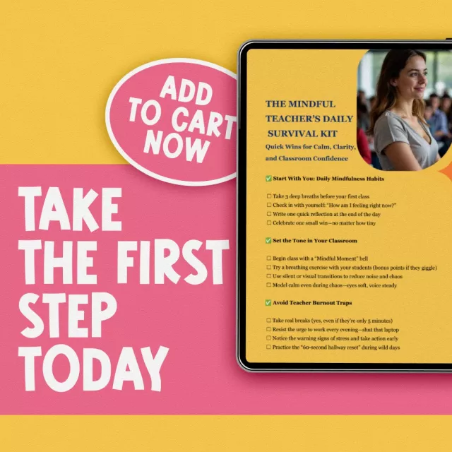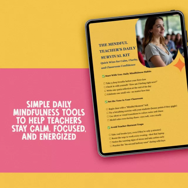 Download The Mindful Teacher’s Daily Survival Kit today and make mindfulness for teachers a natural part of your day. Reclaim your calm, reconnect with your purpose, and show up for your students—and yourself—with more grace.