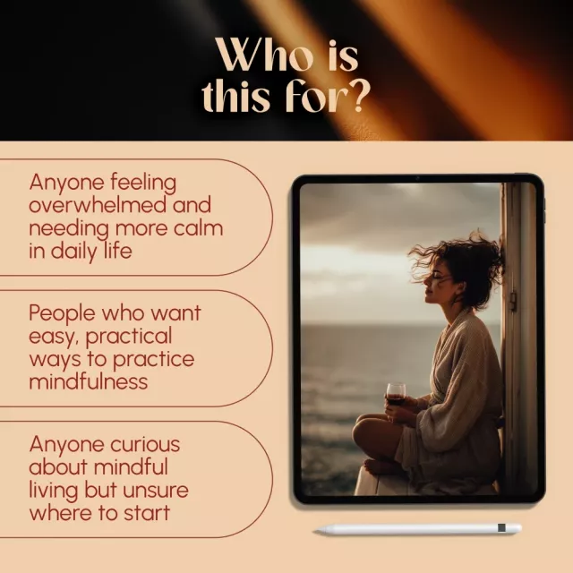 This guide is perfect for busy individuals, beginners to meditation, wellness seekers, and anyone who wants to explore effective ways to practice mindfulness. It’s a gentle, non-intimidating introduction that grows with you, offering insights whether you’re just starting out or ready to go deeper.