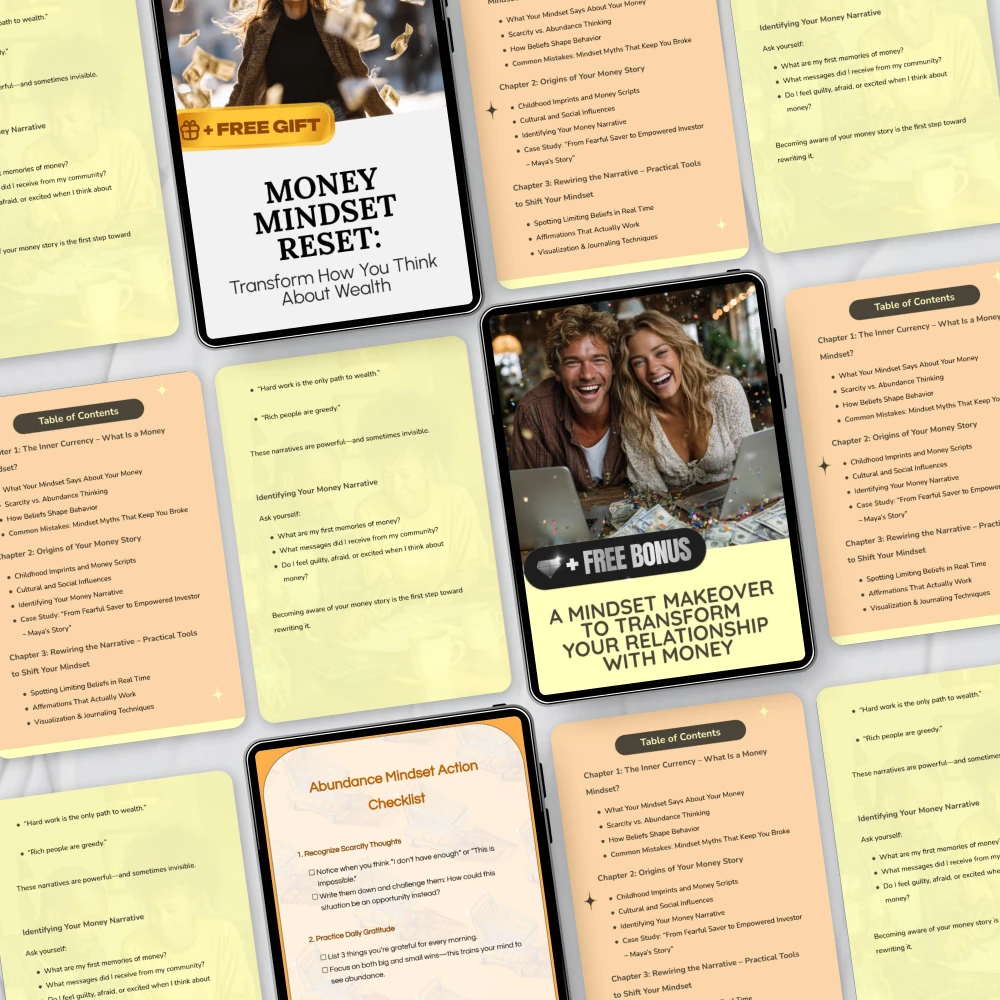 • Comprehensive guides that break down the foundations of money mindset transformation