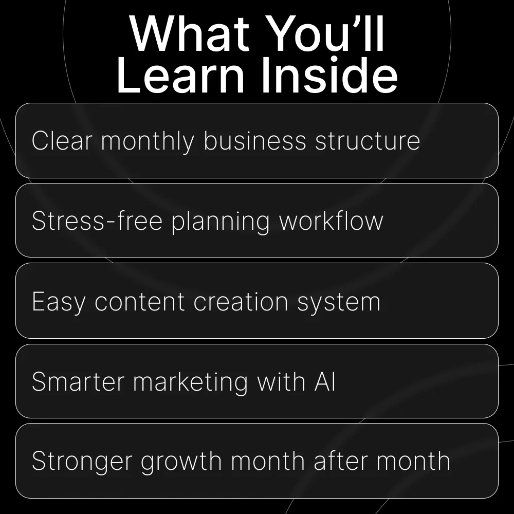 Unlike generic planning templates, this guide is tailored specifically to the real month-by-month responsibilities of running an online business. It blends strategic planning with practical execution, plus modern touches like AI-supported marketing guidance—giving you both the big-picture vision and the day-to-day clarity you need.