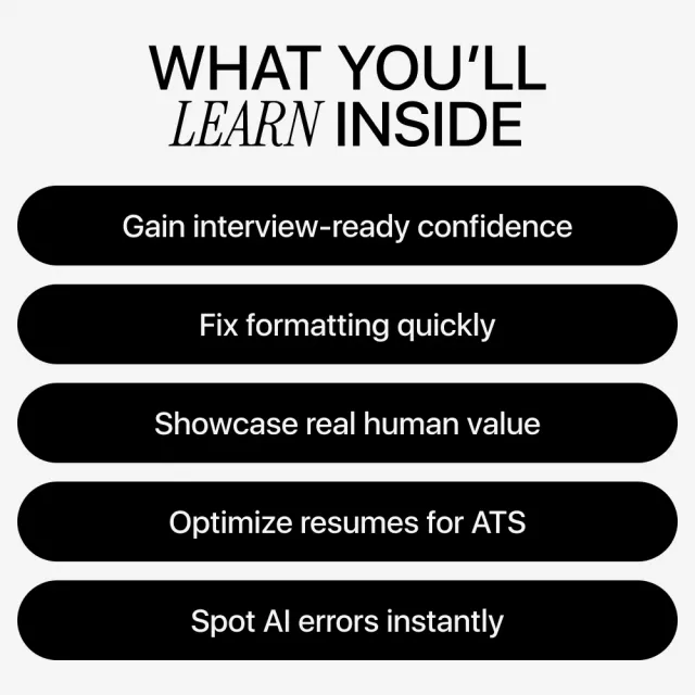 This guide is ideal for job seekers using AI tools, career switchers, recent graduates, professionals re-entering the workforce, and anyone frustrated by low response rates after using AI to write their resume.