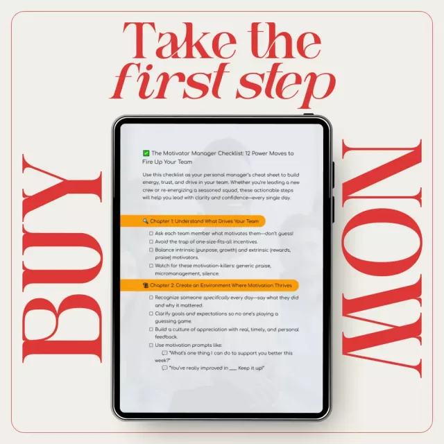 If you’re ready to stop guessing and start leading with purpose, download The Motivator Manager Checklist: 12 Power Moves to Fire Up Your Team today. This simple digital checklist can transform how your team feels, performs, and grows—starting now.