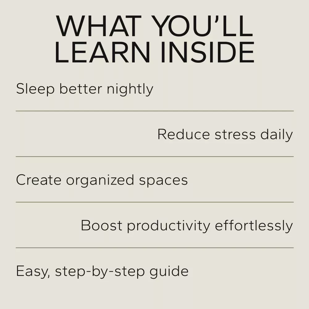 • Achieve a restful, peaceful home—Learn how decluttering directly impacts your sleep and mental clarity.