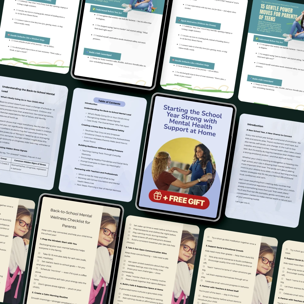 Going back to school doesn’t have to be overwhelming. The Parents’ Toolkit for Stress-Free School Transitions is a carefully curated 3-in-1 digital bundle designed to help parents navigate the emotional and mental hurdles of the back-to-school season. With practical tools and actionable advice, this bundle empowers you to support your child’s mental wellness while maintaining your own peace of mind. Whether you’re dealing with a teenager’s anxiety or looking for ways to strengthen your family’s emotional health, this toolkit is your perfect companion.