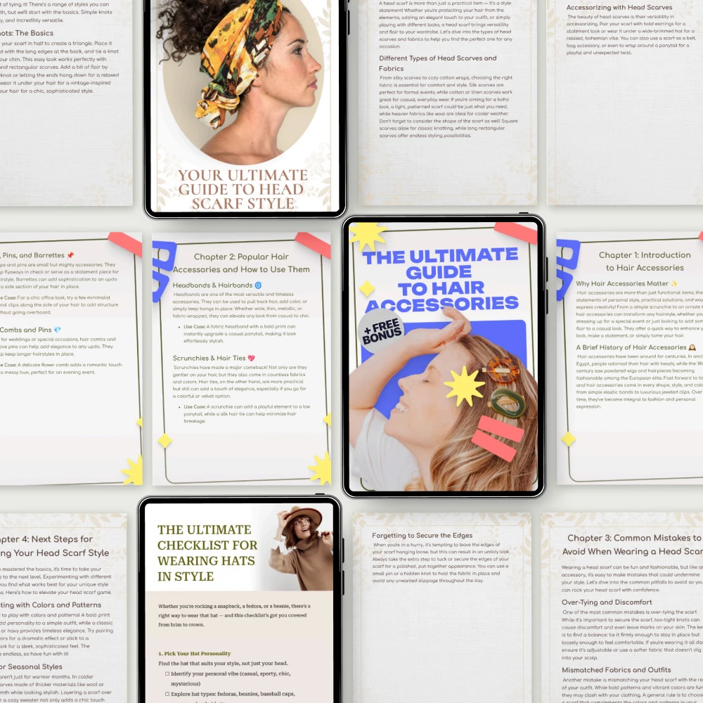 This bundle is a treasure trove of expert advice on hair accessories. The guides are thoughtfully curated with easy-to-follow instructions, making it perfect for both beginners and those looking to elevate their style game. I particularly love the guide on head wraps—it's packed with creative ways to wear them that have truly transformed my look.