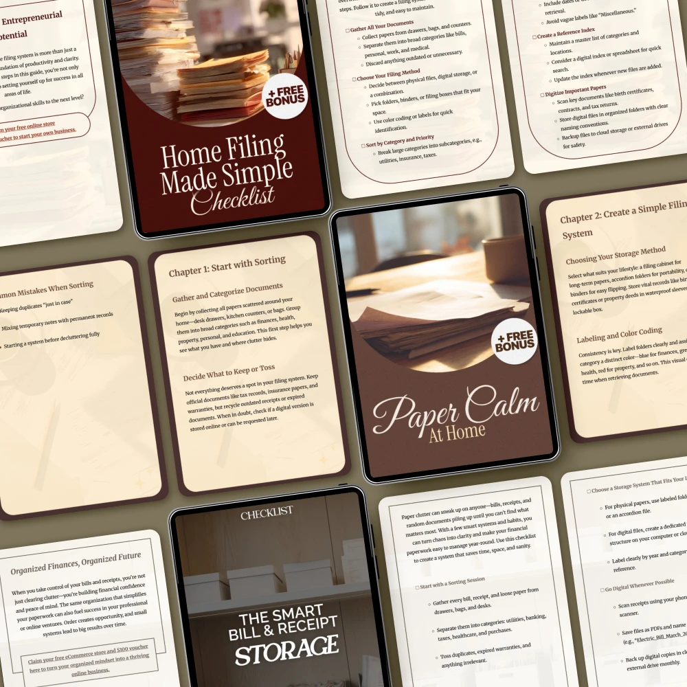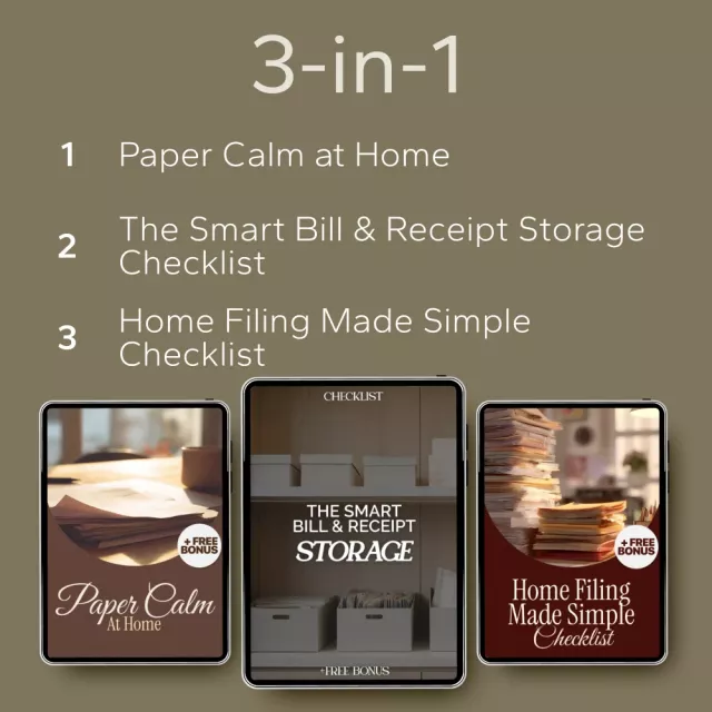 I’ve been struggling with organizing my financial documents for years, but this bundle made a huge difference. The guides are simple and easy to follow. I especially love the 'Paper Calm at Home' guide. However, I wish there were a few more practical examples to really illustrate the steps. Despite that, it’s a solid resource for anyone looking to declutter their finances. Definitely worth the purchase, just not perfect for beginners like me