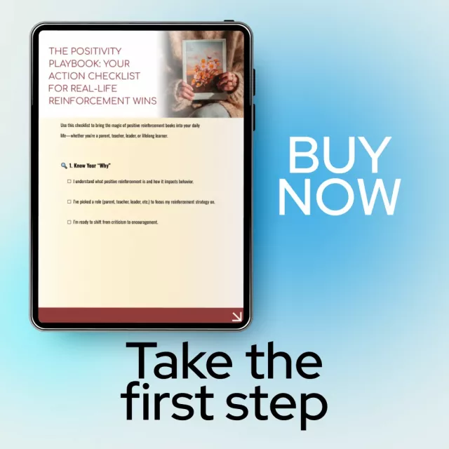 Transform your approach to motivation with The Positivity Playbook: Your Action Checklist for Real-Life Reinforcement Wins. This downloadable checklist is your guide to implementing powerful, actionable strategies for positive reinforcement. Whether you’re a parent, teacher, or leader, this resource helps you move beyond empty praise and embrace real, meaningful behavior reinforcement. Say goodbye to criticism and hello to a new world of encouragement and progress!