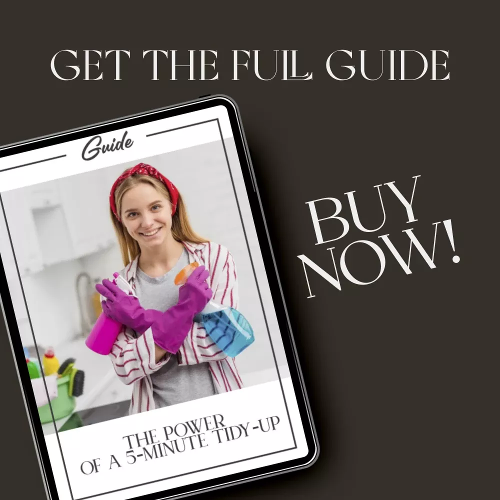 It’s time to reclaim your evenings and simplify your space. Download The Power of a 5-Minute Tidy-Up now and learn how to create a 5-minute nightly tidy up routine that truly sticks. Start tonight—wake up to a home (and mind) that feels lighter, clearer, and ready for anything.