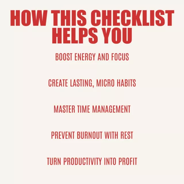 This checklist is perfect for anyone looking to get more done without feeling overwhelmed. Whether you’re a professional looking to stay on top of deadlines, a student balancing multiple assignments, or an entrepreneur striving to optimize their day, this guide will help you unlock your true productivity potential. If you’re tired of being busy but not productive, this checklist is your answer.