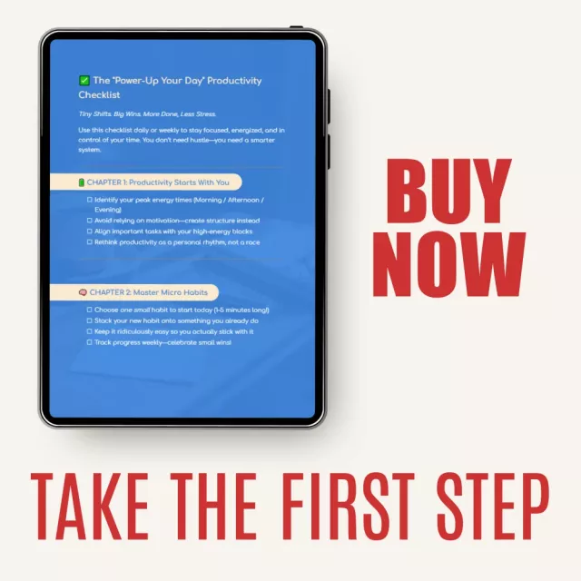 Don’t wait for motivation to strike—take control now with the “Power-Up Your Day” Productivity Checklist. Download it today and start boosting your productivity in just minutes. Take the first step towards mastering your day and achieving your goals with this comprehensive, easy-to-follow guide!