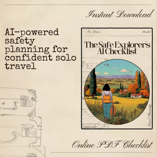 If you’re planning a solo adventure and want to feel confident every step of the way, The Safe Explorer’s AI Checklist is your new go-to digital companion. This easy-to-use guide shows you exactly how to harness the power of AI tools to assess destination safety, spot potential risks early, and prepare smarter—so you can explore freely with peace of mind. Whether you’re a first-time solo traveler or a seasoned explorer, this AI-powered digital download makes trip planning safer, smoother, and stress-free.