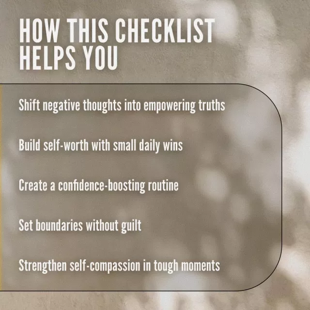 This checklist is for anyone ready to stop being their own worst critic and start showing up with quiet confidence. If you’re searching for authentic ways to improve self worth—without toxic positivity or long, overwhelming guides—this tool is made for you. Whether you’re on a healing journey, building better boundaries, or simply ready to treat yourself with more kindness, you’ll feel supported every step of the way.