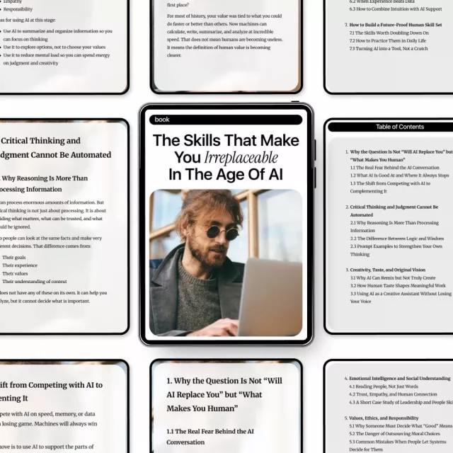 If you want to stay relevant, respected, and irreplaceable, this digital download is your next step. Download The Skills That Make You Irreplaceable in the Age of AI today and start turning AI into a tool that works for you, not a crutch that replaces you.