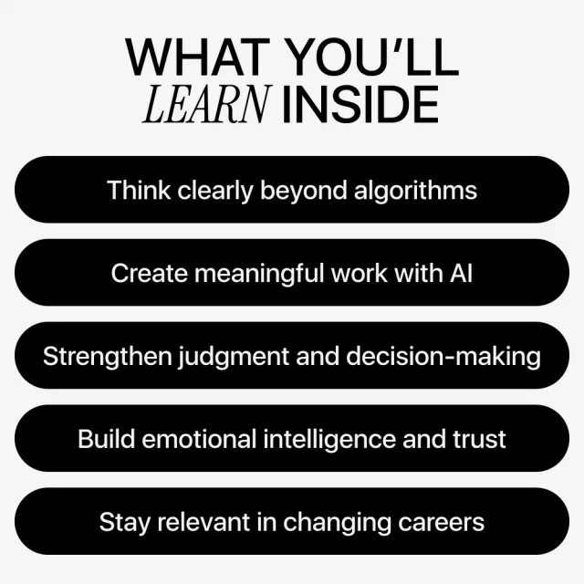 This guide is for professionals, creators, leaders, students, and lifelong learners who want more than surface-level AI tips. Unlike generic productivity checklists, it focuses on deep human abilities like taste, judgment, and responsibility, showing how to combine them with technology instead of outsourcing yourself to it.