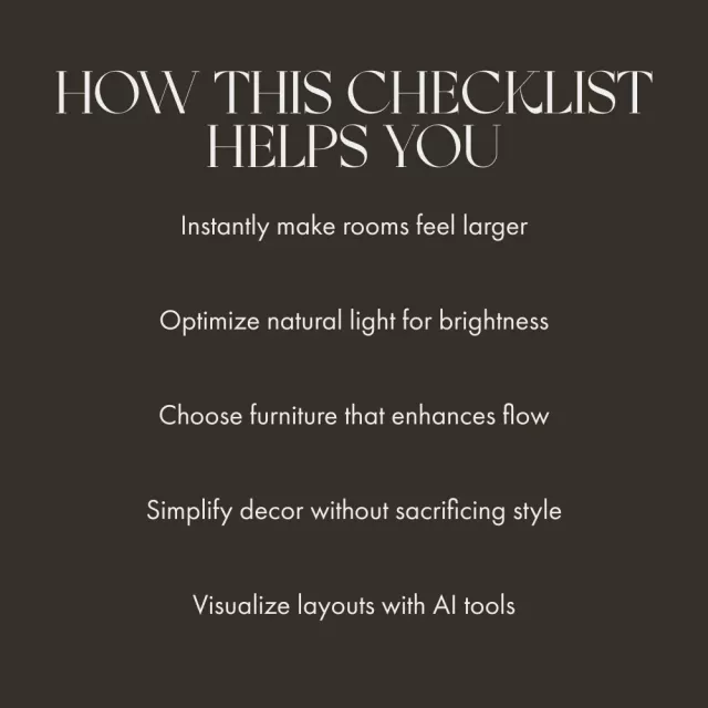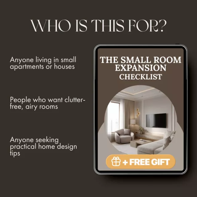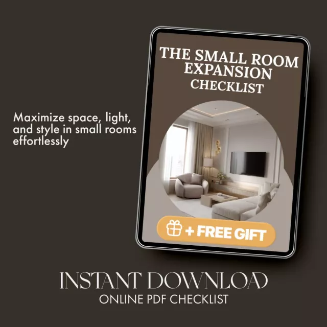 Download The Small Room Expansion Checklist today and learn how to make a small room look bigger—with nothing more than smart styling, a few fresh ideas, and your own creativity. Your dream spacious room is just one checklist away!