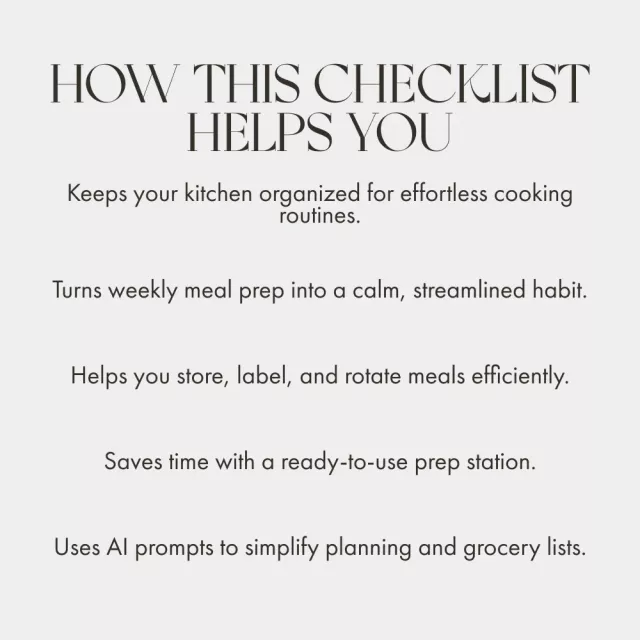 Unlike generic meal prep templates, The Smart Cook’s Meal Prep Checklist focuses on creating a system that works for you. It blends practical kitchen organization with smart planning — and even introduces AI prompts for modern cooks who want to personalize their menus effortlessly. You’ll walk away with a customized process that transforms meal prep from a chore into a lifestyle habit.