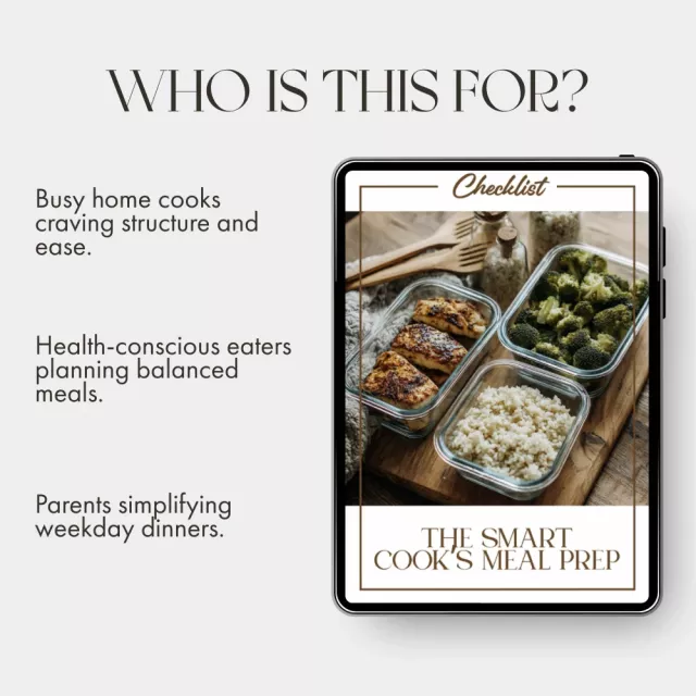 Download The Smart Cook’s Meal Prep Checklist today and take the first step toward an organized, effortless, and energized kitchen routine. Make every week smoother — one prep session at a time!