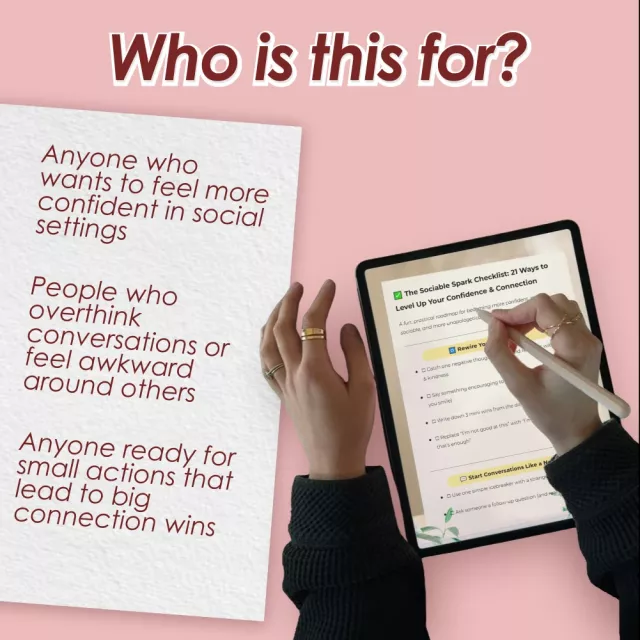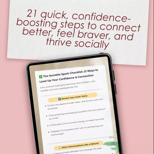 Whether you’re heading into a new social scene, trying to make deeper connections, or simply want to feel more like yourself in conversations, The Sociable Spark Checklist is your go-to companion. Download now and take the first step toward showing up with confidence and connection—one small spark at a time.