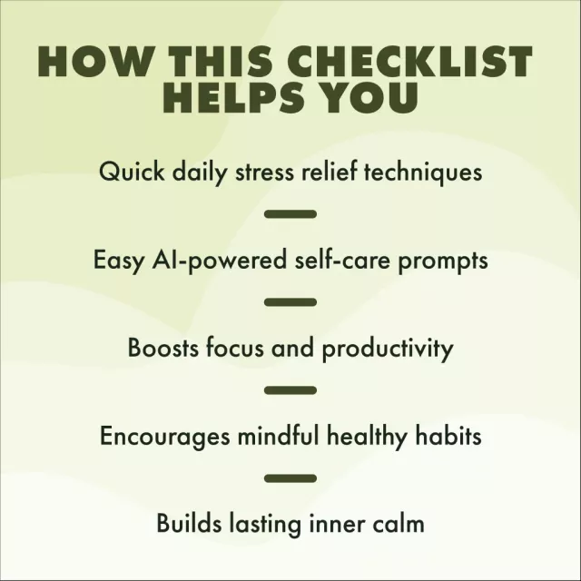 The Stress-Free Life Checklist: 10 Actionable Steps to Calm Your Mind | Digital Download Guide, eBook & Printable Self-Care Checklist for Stress Relief, Mindfulness & Wellness with AI Tools