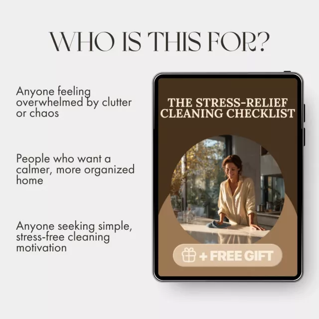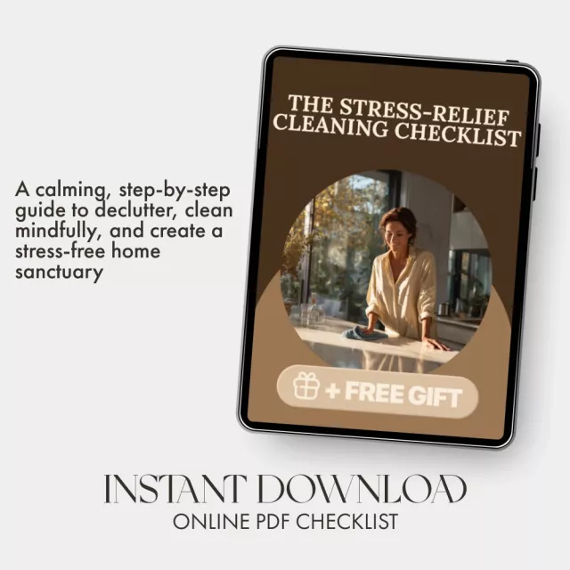 Download The Stress-Relief Cleaning Checklist today and start creating a peaceful flow in your home and mind. Every page helps you feel lighter, more centered, and beautifully in control — one mindful task at a time.