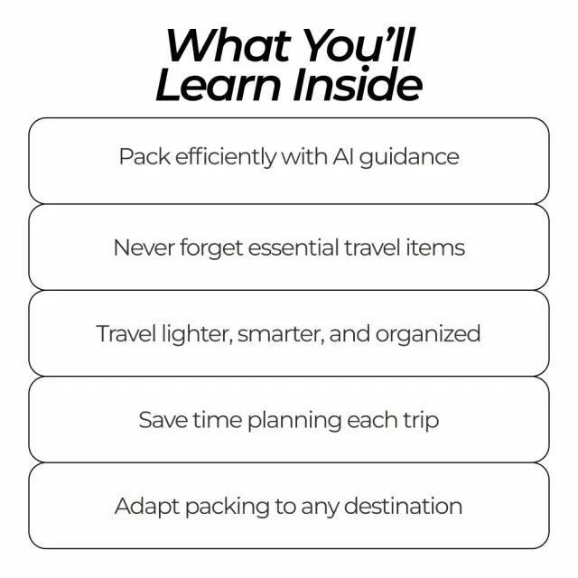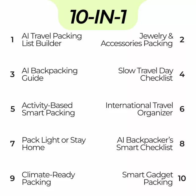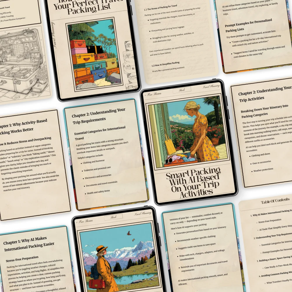 Unlike other packing guides, this bundle leverages AI technology to create personalized solutions for every trip. With an ai travel packing list generator integrated into the resources, it’s not just a generic list—it’s a smart system that adapts to your style, destination, and activities. Whether you’re a backpacker, a slow traveler, or someone who wants to pack light, this bundle takes the guesswork out of every packing decision.