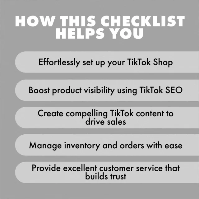 This checklist is perfect for entrepreneurs, small business owners, and TikTok creators eager to sell on TikTok Shop and grow their brand. Whether you’re just starting out or looking for ways to improve your store’s performance, this guide covers all the essentials to help you succeed. It’s ideal for those who want a comprehensive, easy-to-follow resource on how to use TikTok Shop Seller Center.