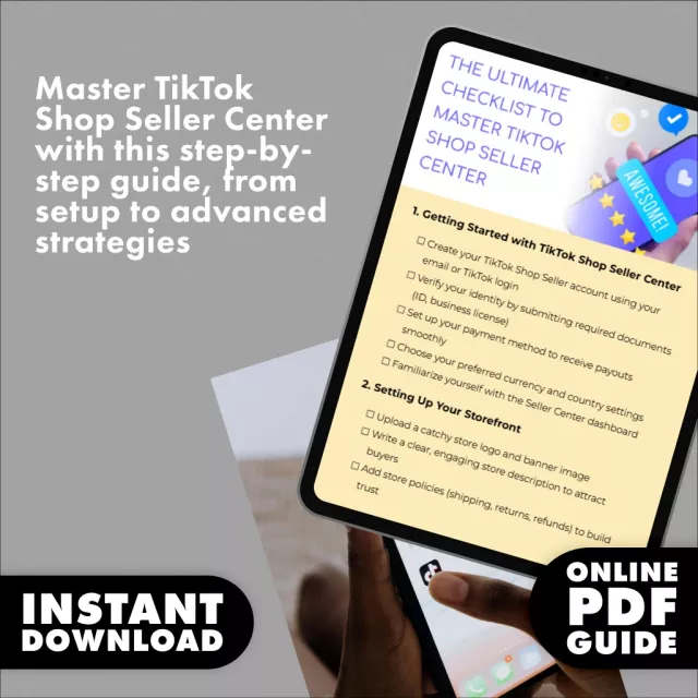 Ready to take your TikTok Shop to the next level? With “The Ultimate Checklist to Master TikTok Shop Seller Center,” you’ll get a comprehensive, step-by-step guide that walks you through every aspect of setting up and optimizing your TikTok Shop Seller Center account. Whether you’re new to selling or looking to improve your existing store, this digital download provides everything you need to succeed. From creating your account to mastering TikTok SEO, this guide will help you maximize your store’s potential and boost sales effortlessly.