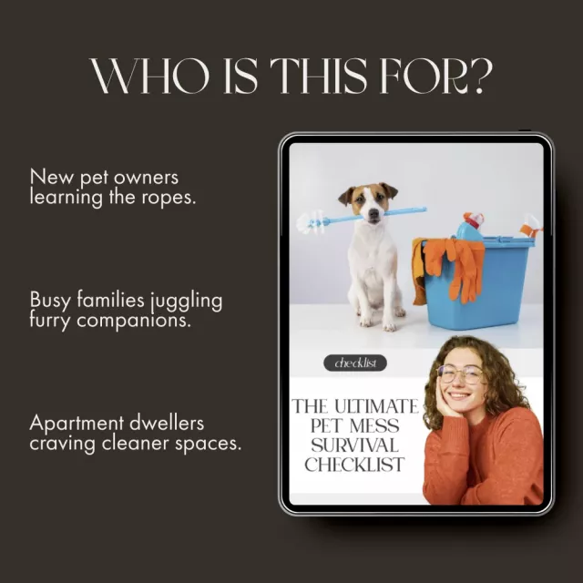 Make your home sparkle again while keeping your furry friend happy! Download The Ultimate Pet Mess Survival Checklist today and take the first step toward a cleaner, calmer, and more pet-friendly living space.
