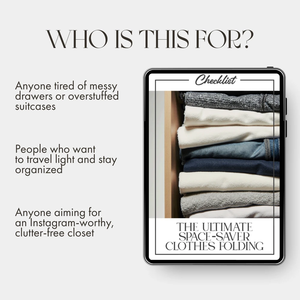 Unlike generic folding tutorials, The Ultimate Space-Saver Clothes Folding Checklist is designed for real-life results. It combines proven techniques with clever space-saving hacks to make every item count. You’ll not only learn how to fold clothes for maximum space but also maintain a visually pleasing, easily accessible wardrobe.