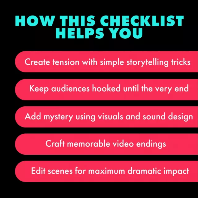 Don’t let your hard work go unnoticed. Elevate your storytelling, hold your viewers’ attention, and deliver unforgettable video experiences. Download The Ultimate Suspense-Building Checklist for Captivating Videos today and start creating content that truly captivates.