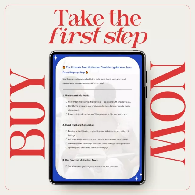 If you’re ready to stop wondering how to motivate your teenage son and start seeing real progress, The Ultimate Teen Motivation Checklist is the tool you need. Download it today and take the first step toward unlocking your son’s potential, building his drive, and strengthening your relationship with him.