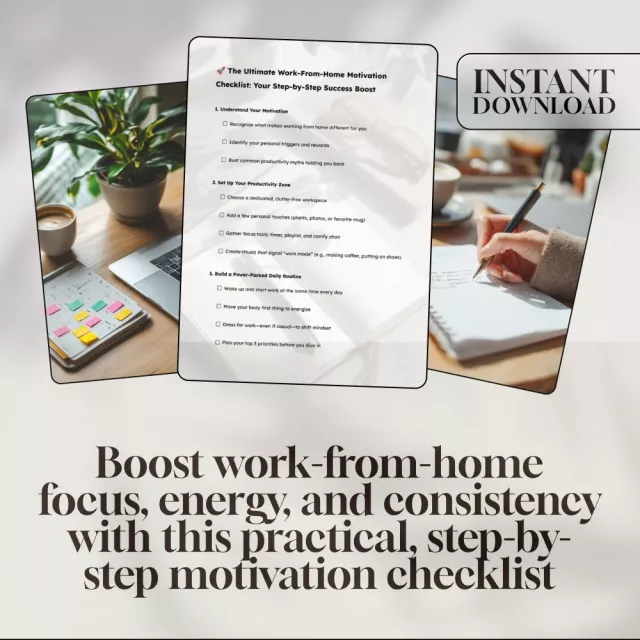 Working from home can be freeing—but also frustrating when your motivation dips and distractions take over. Whether you’re new to remote work or just need a boost, The Ultimate Work-From-Home Motivation Checklist: Your Step-by-Step Success Boost is your no-fluff, action-driven companion to help you show up each day feeling empowered and in control. This printable and digital checklist is designed for anyone asking, “How to motivate yourself to work from home?”—and ready for real answers that work.